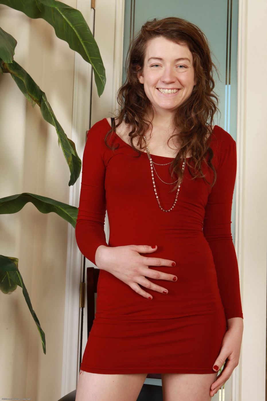 Mahonia shows off her hairy pussy