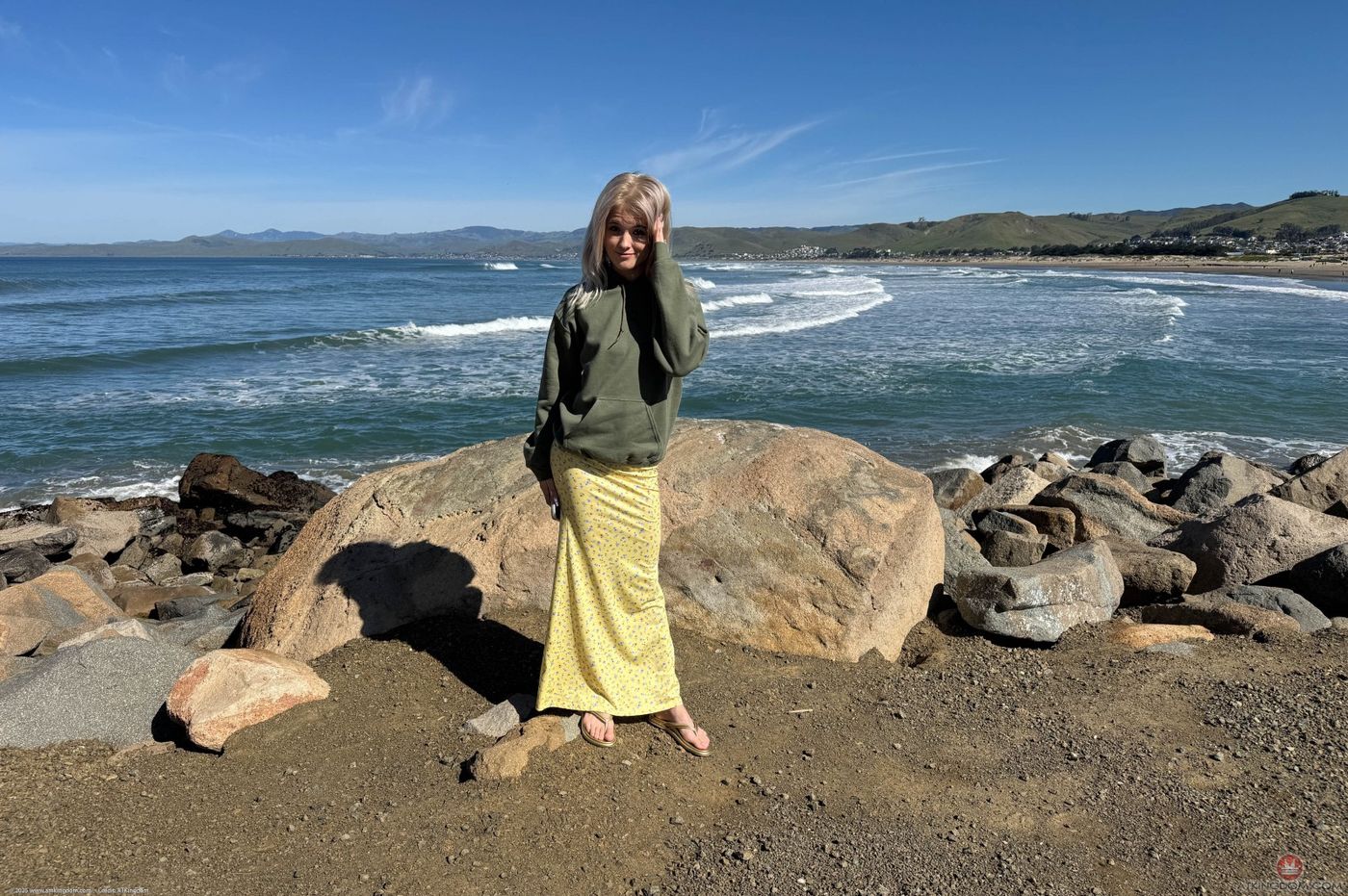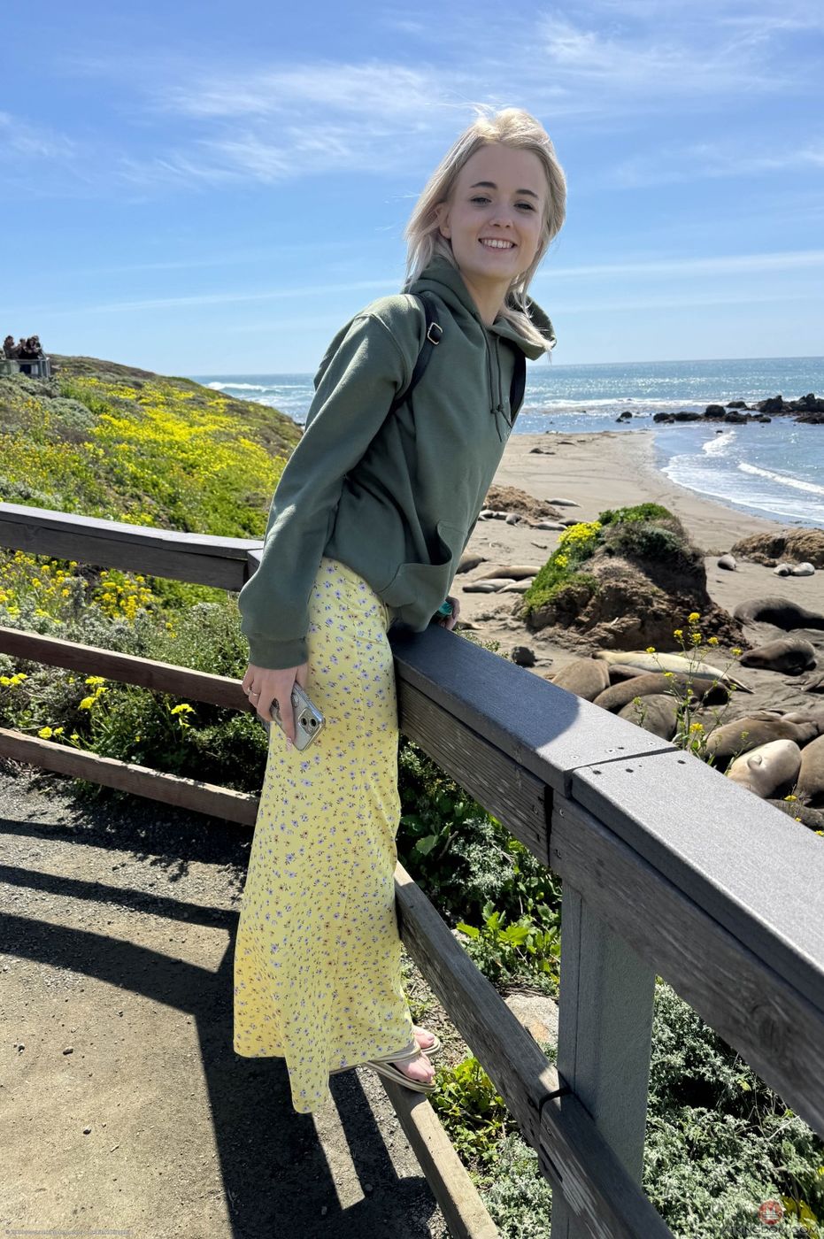 - Description: You take Nicole up the coast and stop at some lovely spots. She loves walking on the rocks and sand. She feeds the squirrels and is all smiles. She has a few smokes in the car, and you watch her pee when you get to the hotel.