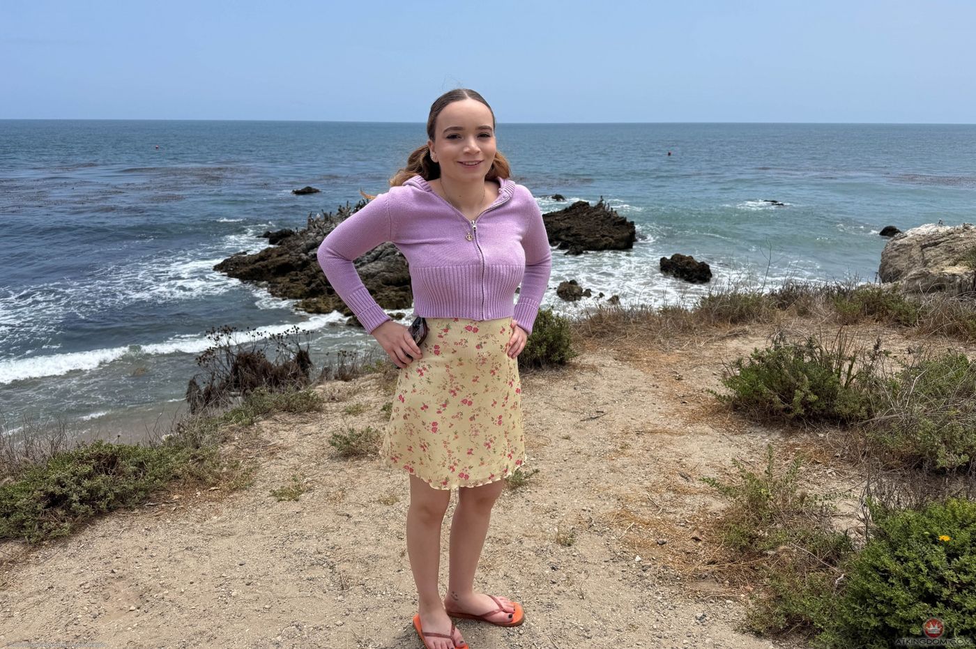 - Description: Selina is excited to head out for the day, but has to pee first. You watch and her pussy looks so good you can't wait to get back. You wonder around on the sand she finds some sea glass. She has to pee again when you get home, and you get her off with your hands after.