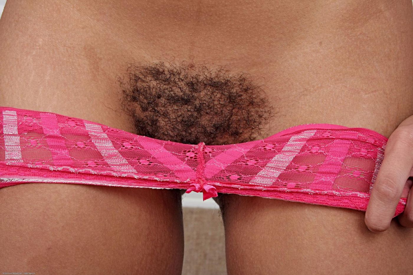 - Description: Tess Morgan strips out of her cute pink and zebra print lingerie and goes to town on her hairy ebony pussy. Brought to you by Wanton Photography.